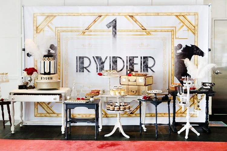Tiệc sinh nhật đầu tiên của Ryder được tổ chức theo phong cách trong Garden Room tại SLS Beverly Hills. Vì căn phòng có một tấm thảm đỏ rực rỡ, chúng tôi nghĩ sẽ rất thú vị nếu kết hợp một chủ đề như Great Gatsby, nơi màu sắc hoạt động tốt và khách từ trẻ đến già đều có thể tổ điểm cho căn phòng để tổ chức tiệc sinh nhật.