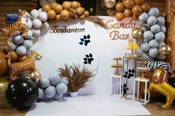 Chi tiết backdrop sinh nhật muôn thú cho bé trai XV749