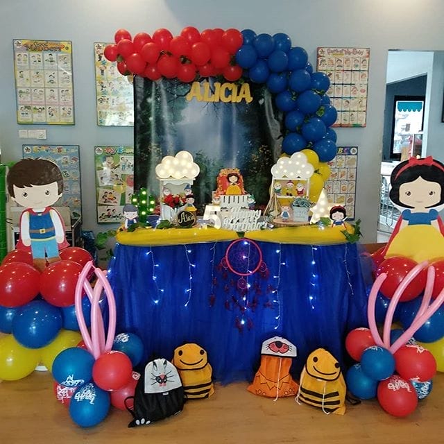 Chi tiết về bộ sản phẩm trang trí bàn sinh nhật công chúa Bạch Tuyết XV422