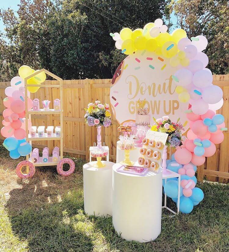 Chi tiết về bộ sản phẩm trang trí bàn quà sinh nhật ngoài trời Donut XV704