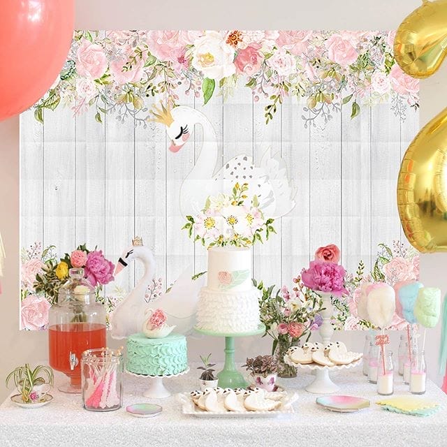 Chi tiết về bộ sản phẩm trang trí backdrop sinh nhật thiên nga XV283