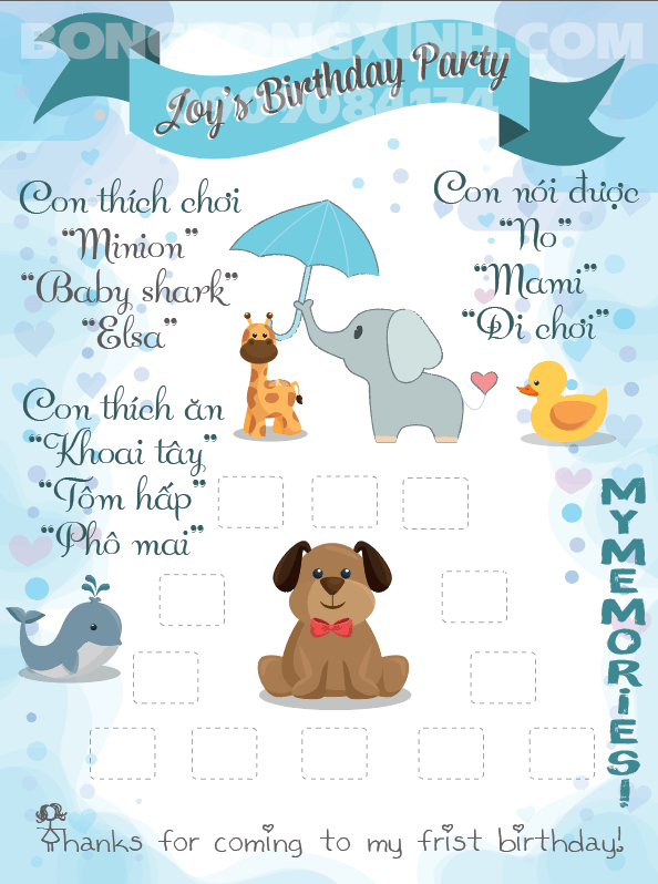 Bảng khung hình 12 tháng chủ đề động vật cho bé XV555 rất dễ thương rất thích hợp để làm nền cho ảnh của bé và sẽ làm những ảnh đó trở nên ấn tượng hơn hết vì vậy quý khách hãy dùng những tấm ảnh dễ thương của bé để trang trí lên khung hình 12 tháng cho bé này nhé.
