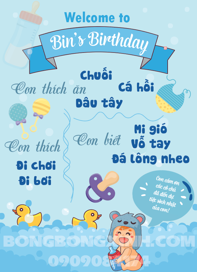 Các bước đặt sản phẩm bảng thông tin tông màu xanh cho bé trai XV588 từ Xinh Event.
