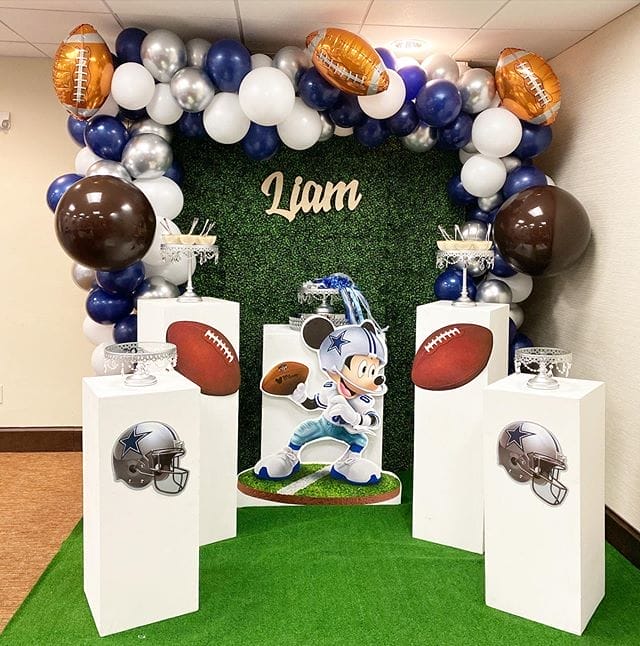 Sản phẩm bao gồm: Backdrop sinh nhật, bàn quà gallery, dây bong bóng, cùng nhiều phụ kiện trang trí sự kiện khác