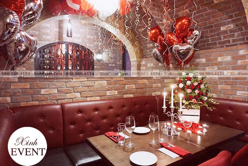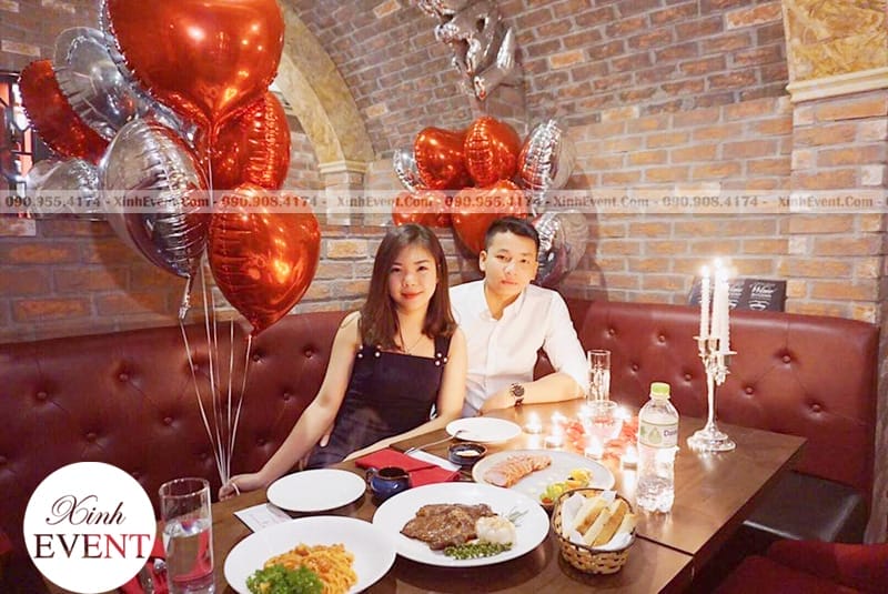 Bong bóng bạc trang trí sinh nhật đơn giản tại nhà hàng XV148 được sử dụng tạo nên một bữa ăn sinh nhật đơn giản cho các cặp đôi yêu nhau.