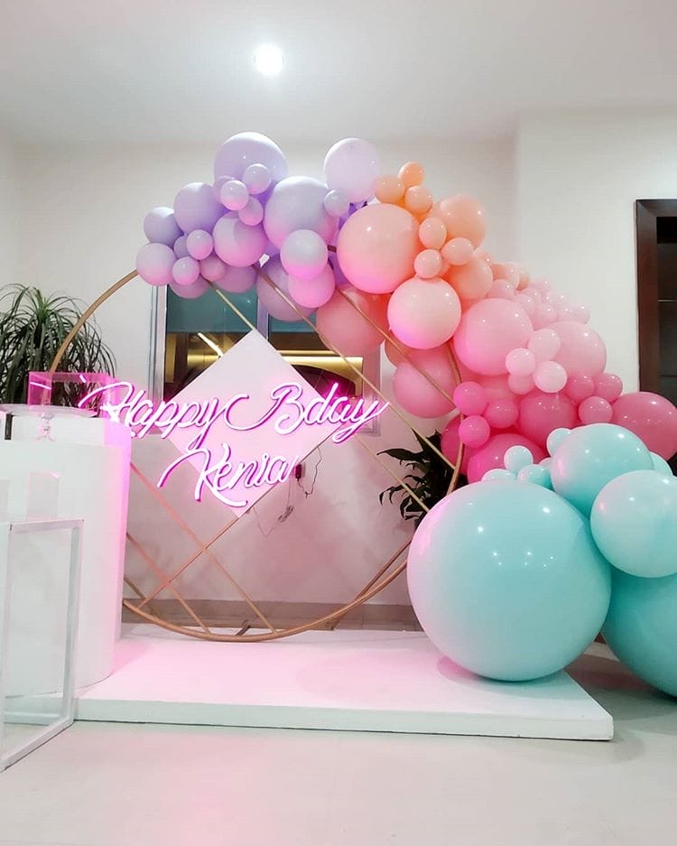 Bộ phụ kiện trang trí bao gồm: Tiểu cảnh sinh nhật bằng bong bóng