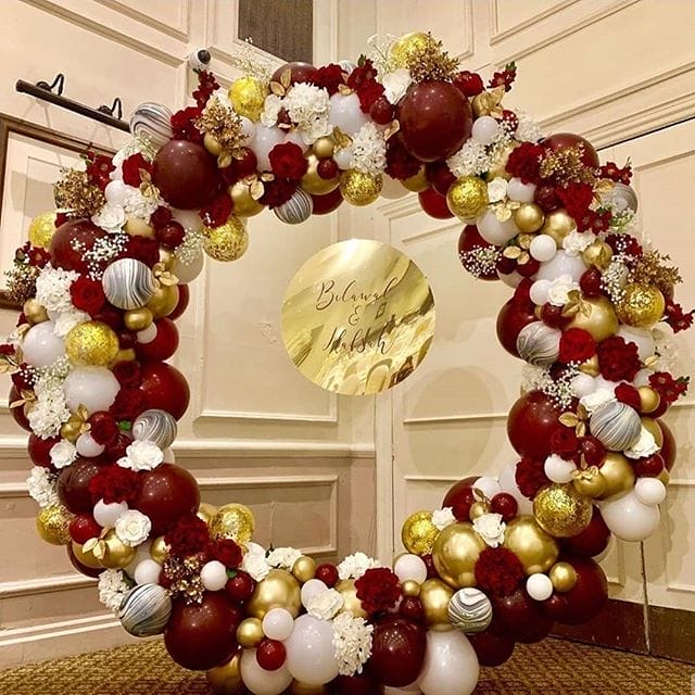 Ý tưởng: Trang trí bong bóng đỏ, trắng và vàng đồng,…