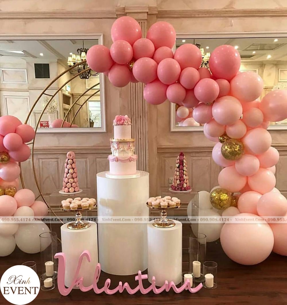 Trang trí bàn sự kiện XV031 có thiết kế màu hồng độc đáo và sang trọng, thích hợp để sử dụng cho hầu hết sự kiện hiện nay. Với cốt lõi sản phẩm được làm từ các bong bóng Mỹ nên sản phẩm vô cùng quý phái và sang trọng khi trang trí tại các sự kiện trọng đại.