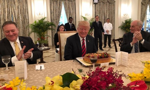 Trong bữa tiệc trưa tại văn phòng Thủ tướng Istana hôm nay, các quan chức nước chủ nhà Singapore đã tổ chức sinh nhật bất ngờ cho Tổng thống Mỹ Donald Trump sớm ba ngày, theo ABC News. Ông chủ Nhà Trắng sẽ bước sang tuổi 72 vào ngày 14/6.